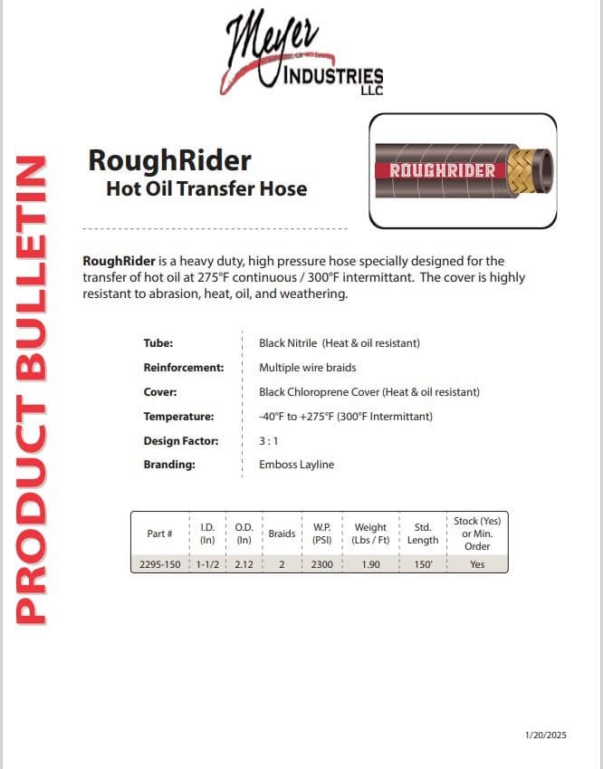 1.5″ Roughrider Hot Oiler Hose 100ft roll